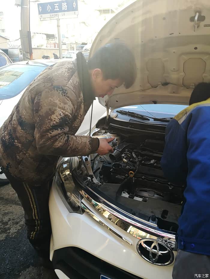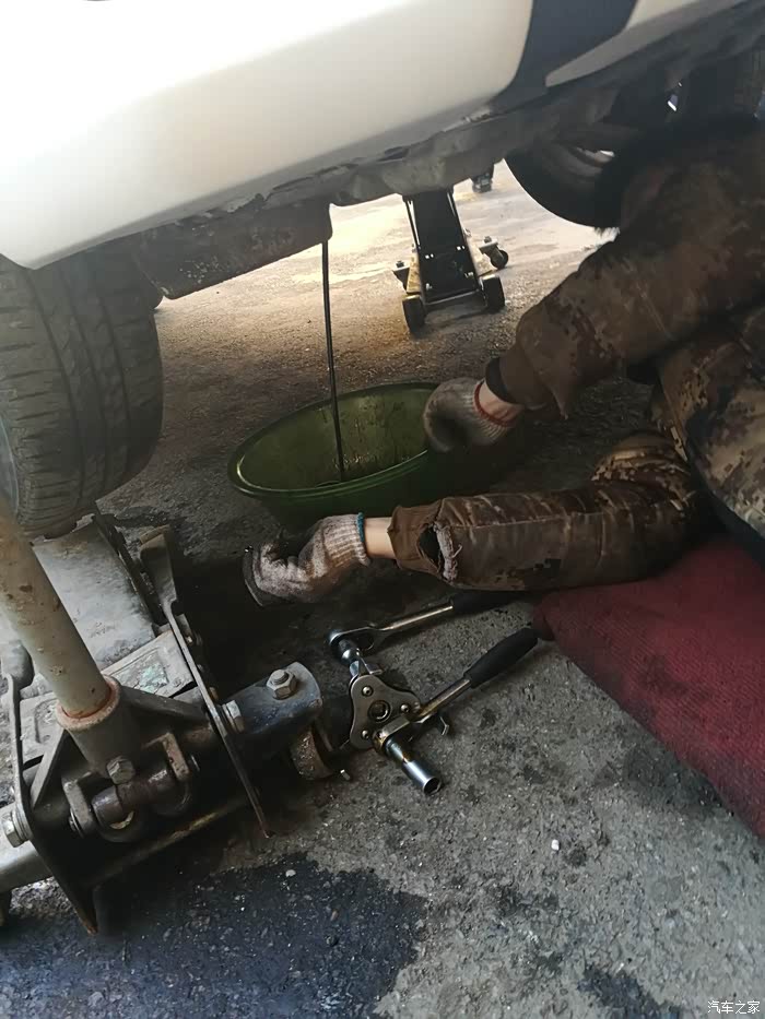另一个角度给大家展示一下维修师傅认真的态度。每次给小威换机油都会剩一点,毕竟小威的胃容量有限,呵呵。