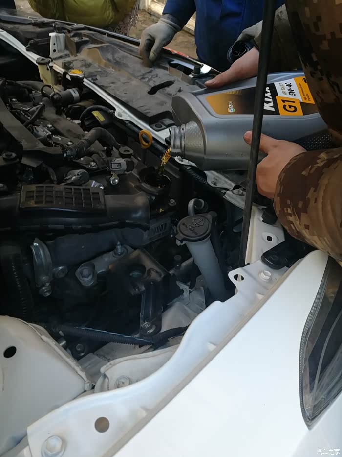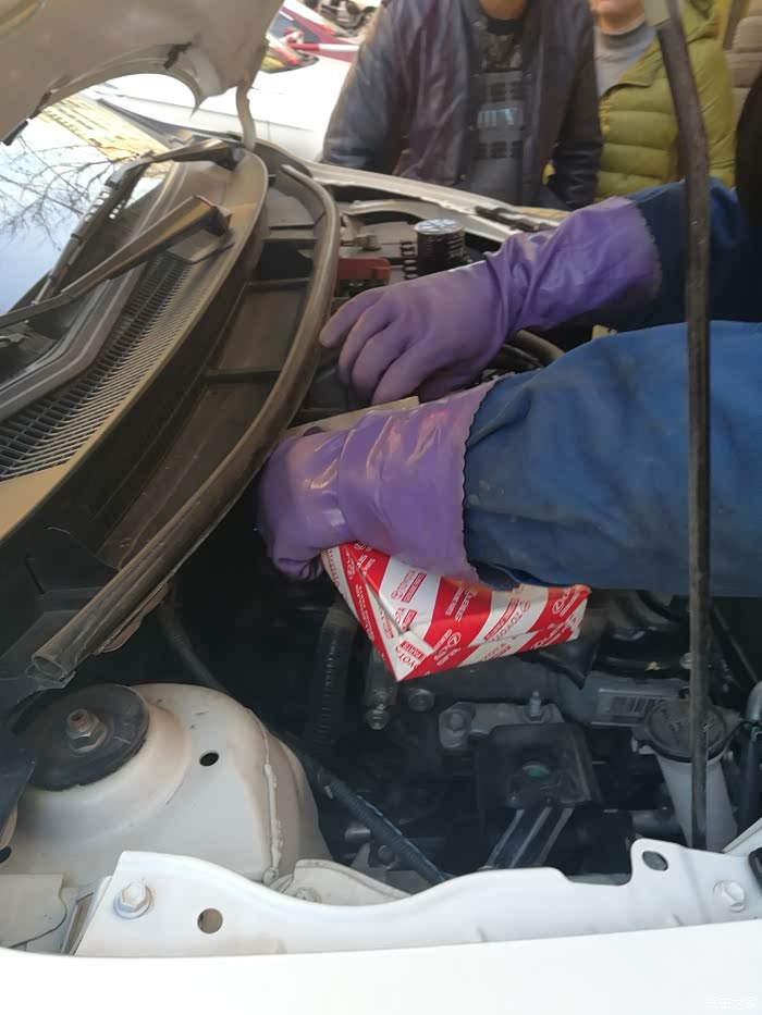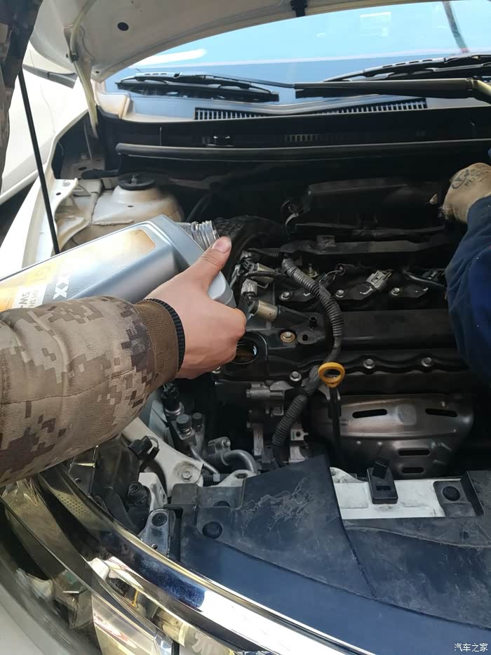 废机油排出后师傅开始给我的小威添加新的机油,更换全合成机油已经是我为并不高大上的小威的比较好的礼物了。