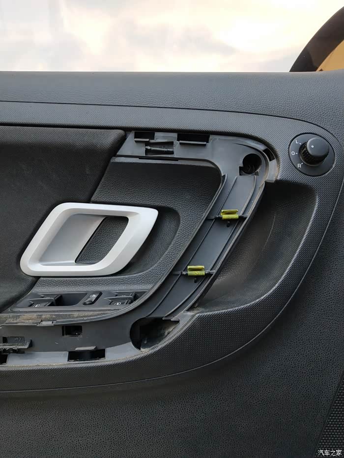 门板上有三个接头要取下来才能和门分开,一个是把拉门的线,一个是控制升降玻璃,一个是调整后视镜的。
