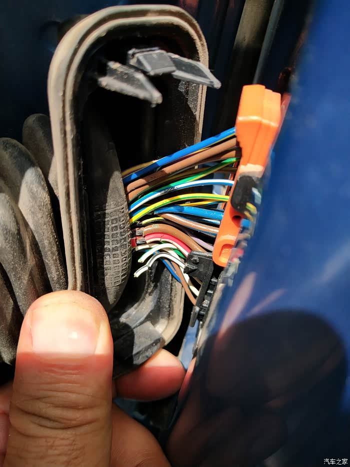于是把前门线束拆开一看,果然如此两根线全断了,还有数根也露出线了,大概用不了太久就要断了。