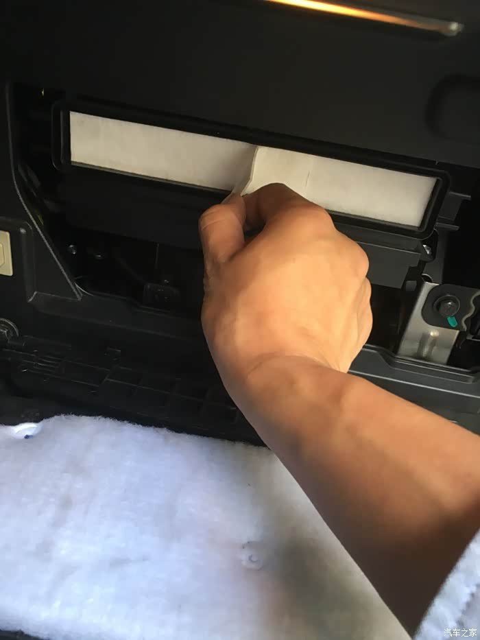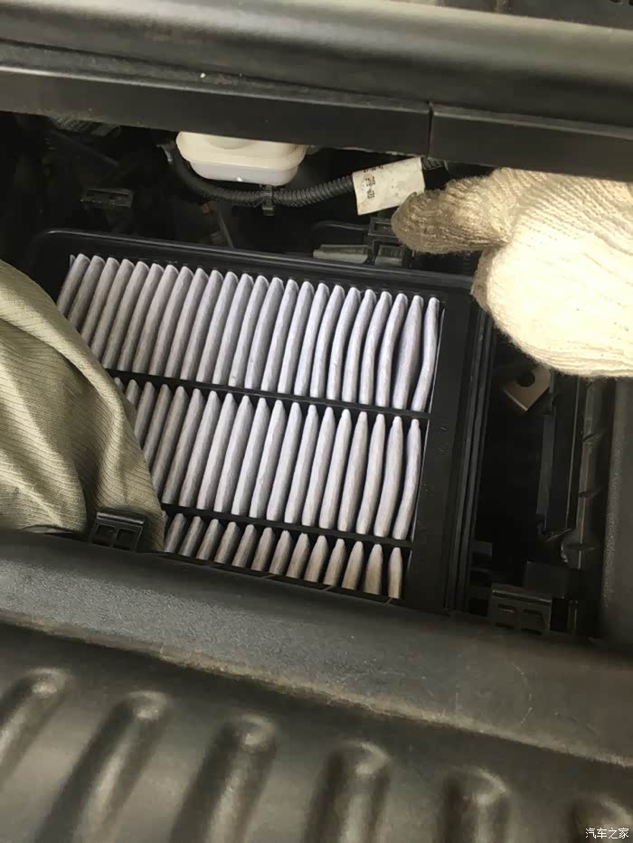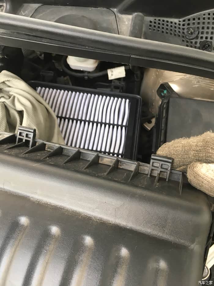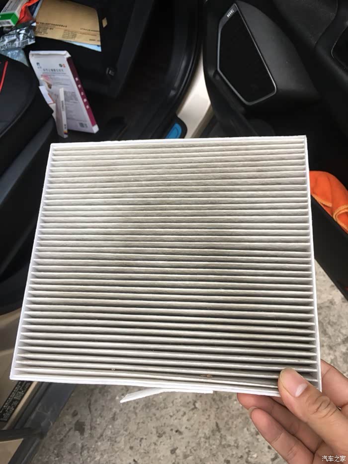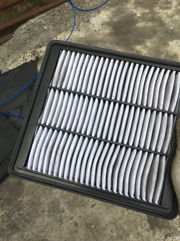 拆下来的空气滤芯还很干净,不用更换,拿气枪吹一下就可以。注意,一点要从上往下吹。不可反吹。吹干净后就可以按拆的相反步骤装上去可以了。