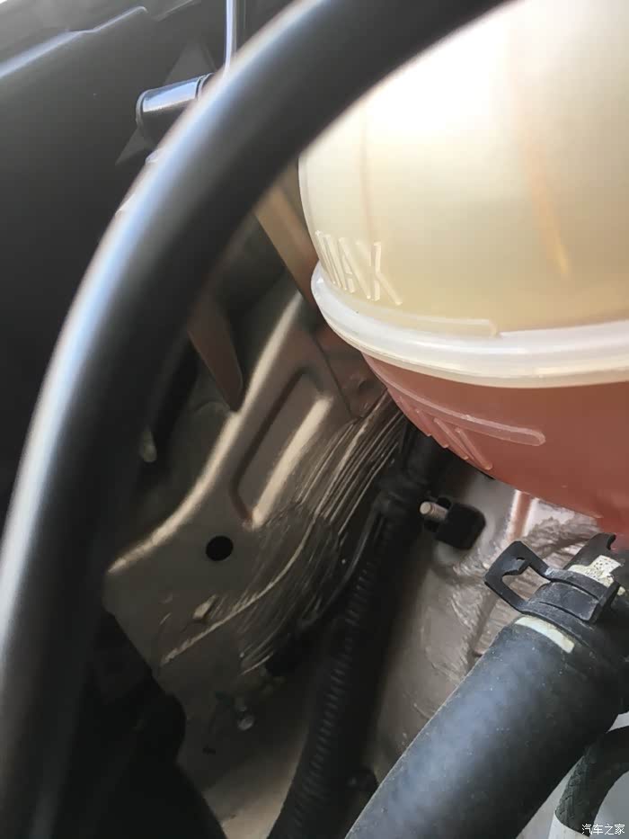 防冻液检查。少了可能引起开锅,多了会影响排气。一般两年更换一次,防冻液不可混加。