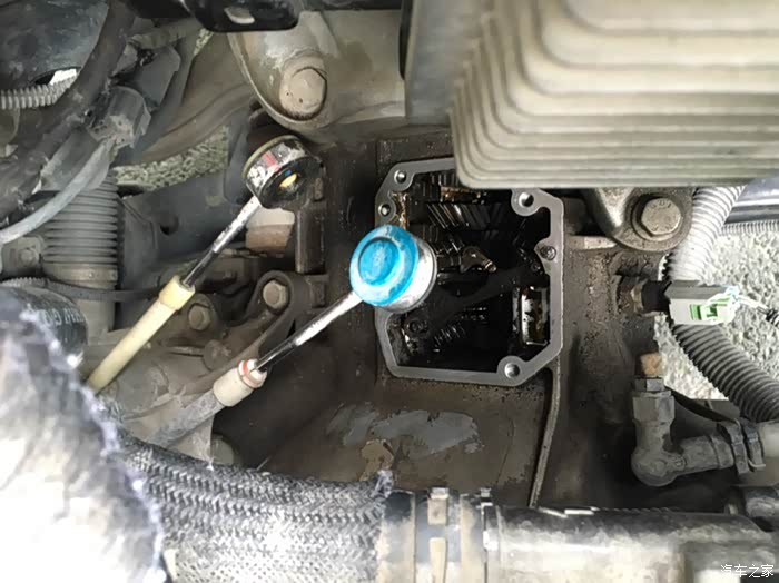 车子拖到4s店,接待员叫来了一个师傅,分析了下原因,就开始拆那变速箱换挡盖