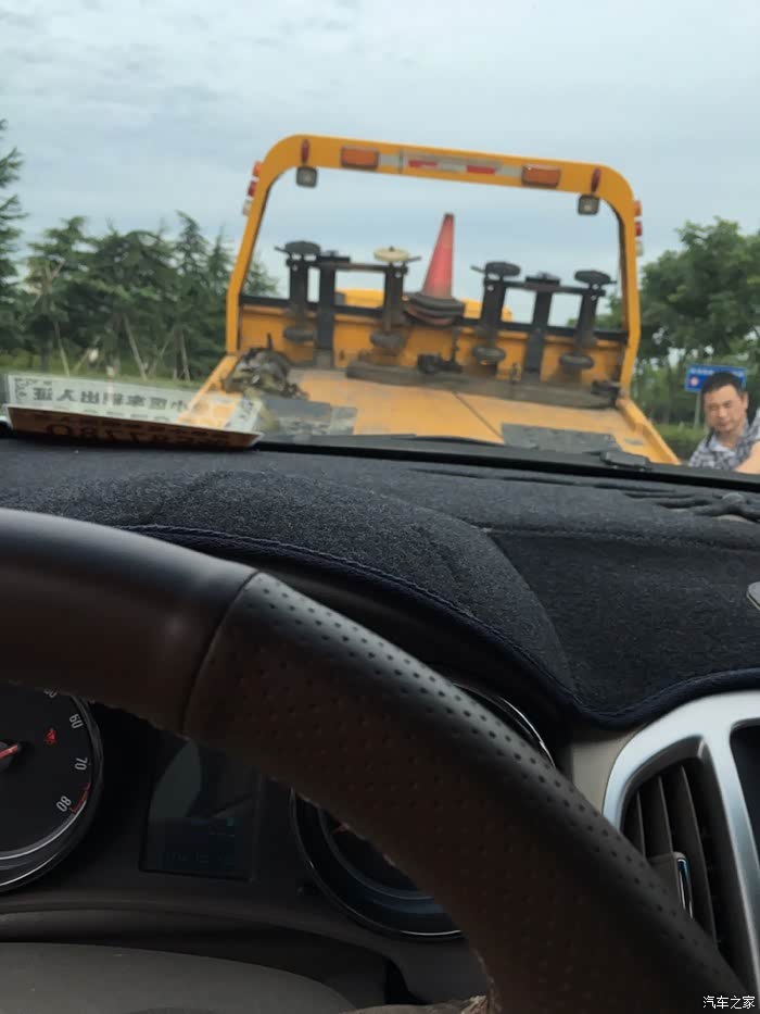 还是算了,熄火,我在想打那个电话,先想到了4S店电话,打过去,没人接,人家没上班,然后想到了找保险公司电话,还好后来是叫保险公司,免费的,前档粘着的保险标志,打过去,废话一通,叫来拖车,自己买的中保,故障拖车,50公里内无限次拖车,打好电话,下车,放三角牌,后面还要堵车呢