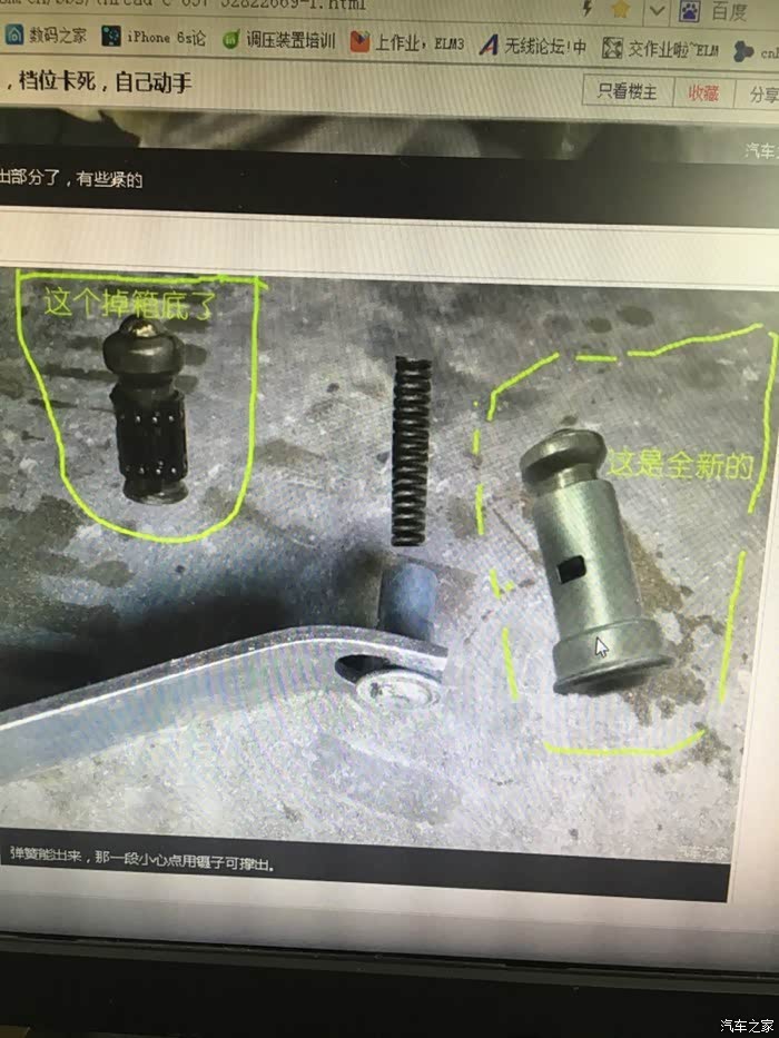 这个是科鲁兹论坛转的,他是换这个定位销,不过我是换了总成,其实我也可以换定位销的,不过想想后来的维修,我换定位销还不够,因为变速箱里的一个零件也坏了