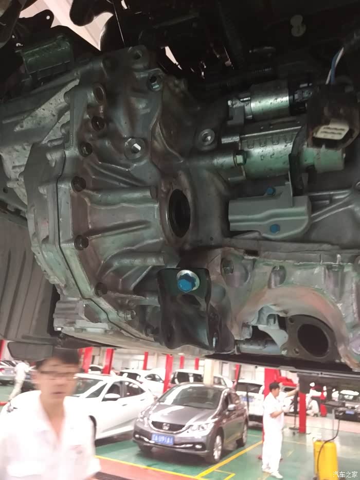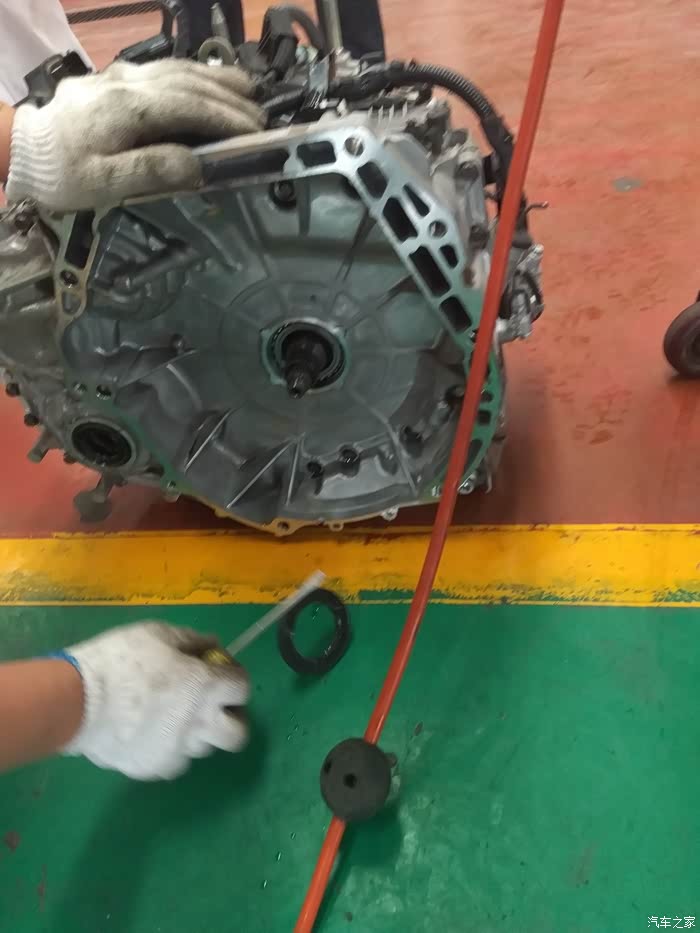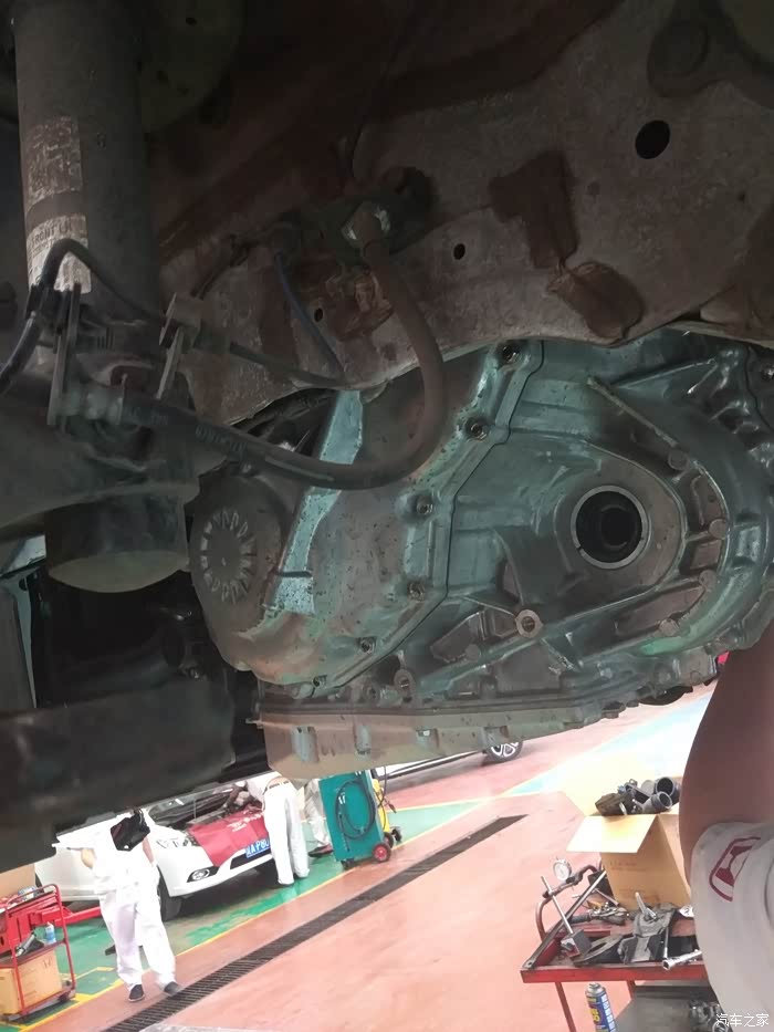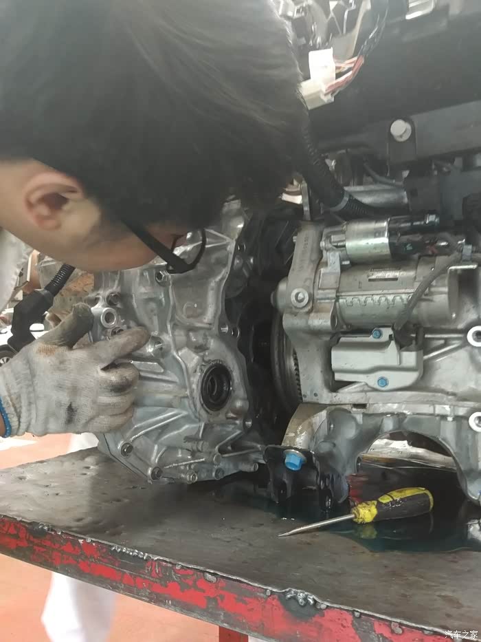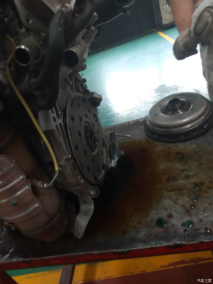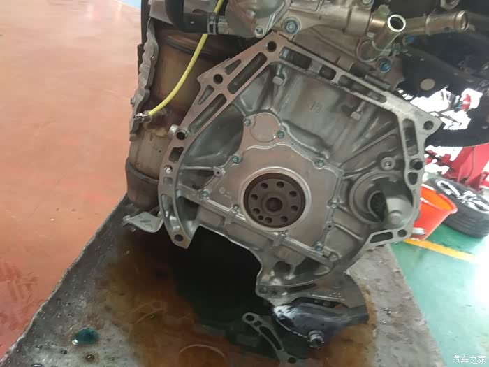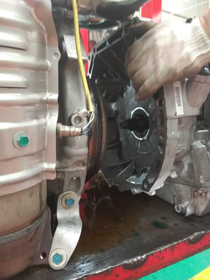 细节···这个上边的油不一定是漏出来的,因为把发动机和变速箱分开,就会出油~~~所以····因为发动机那边的油封没有油,那就只能换它了~~