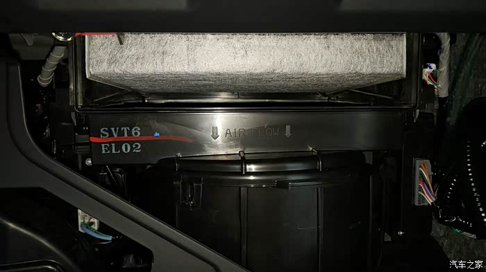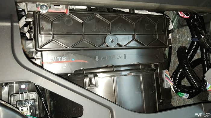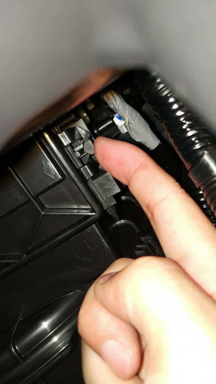 最后是空调滤的面板,从手指指的这个卡扣两边同时用力按下,面板就可以卸下。