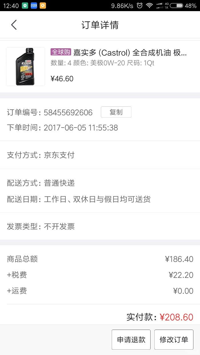 刚刚看到狗东这款黑嘉打折,然后又不由自主的买了四桶。。。感觉要剁手。。。没错!网上的机油我就是敢买!