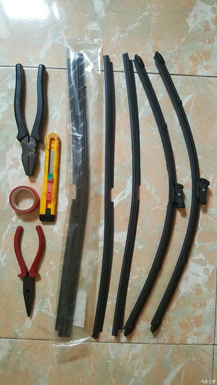 胶条雨刷和更换工具合照!主要工具是美工刀和老虎钳!