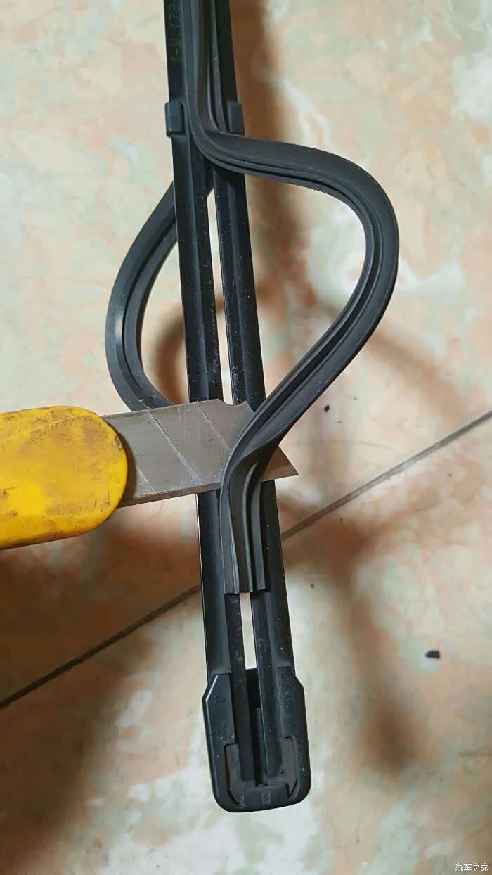 用老虎钳用力夹着两边的钢片往中间靠,雨刷胶条会有变型和位移的状态,不用管它,使劲往中间夹着就是了,一边夹一边看另一边钢片是否有足够位置进入对应卡槽,位置允许就放进卡槽松开老虎钳就是了。困难指数7星!