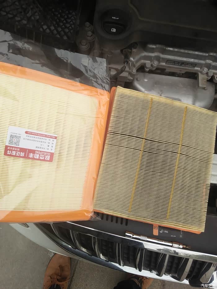 第六步 拿出买的滤清棉和旧的对比下看看是否合适。 右为新的 ,左为车上拆下来的 。我们要换的就是这个东西。