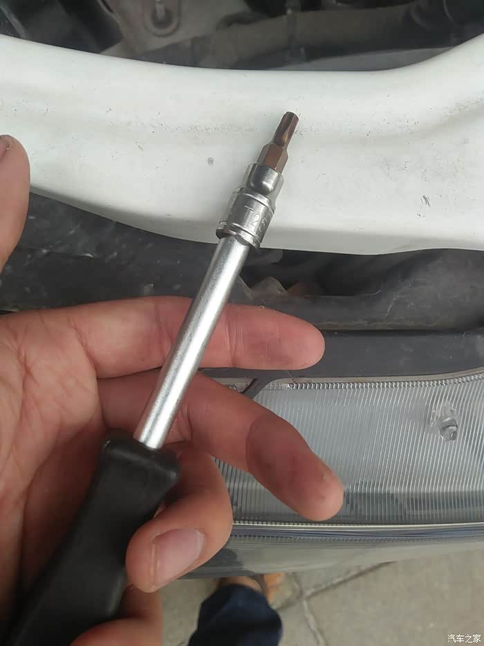 第三步从工具箱里面找到代号为T25的异形十字起,如图。这个是用来拆装滤清的盒子的.