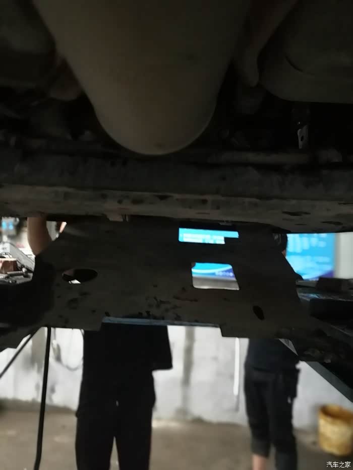 装的发动机护板,变速箱油放油螺丝藏在车子左下方一个塑料壳子里面,没换过还真不好找,加油孔也在里面。
