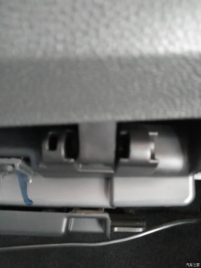 第五步:需要取下手套箱。手套箱下面两边有两个合页,合页中间有个栓子拔出来就可以了。注意,合页中间栓子时有倒钩的,要用小起子按下才能拔出来。