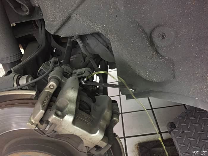 剩下的就是换制动液,如果说空滤机滤还勉强能自己来做的话,制动液这种事情就只能专业人员来做了。首先需要把车吊起来,车里需要人踩刹车,另外还需要人在四个轮子间来回移动,按经验放掉旧的制动液一边倒入新制动液。总之这种程度已经不是我们能做的了,还是4S给力。