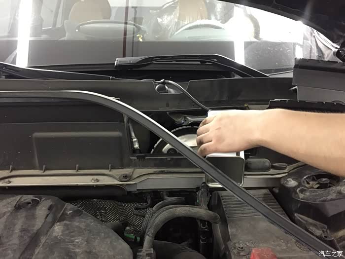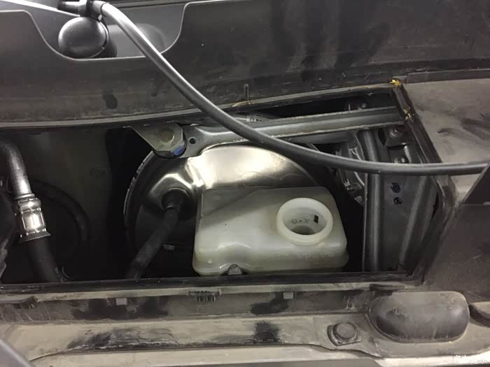 制动液箱就在主驾正前方,打开要拆掉胶条。