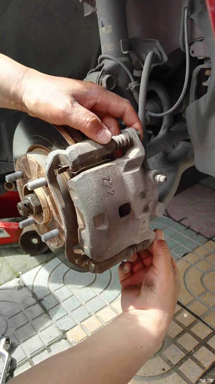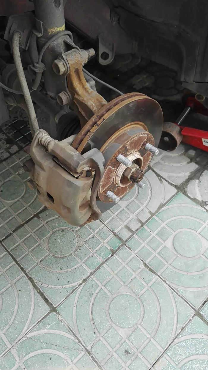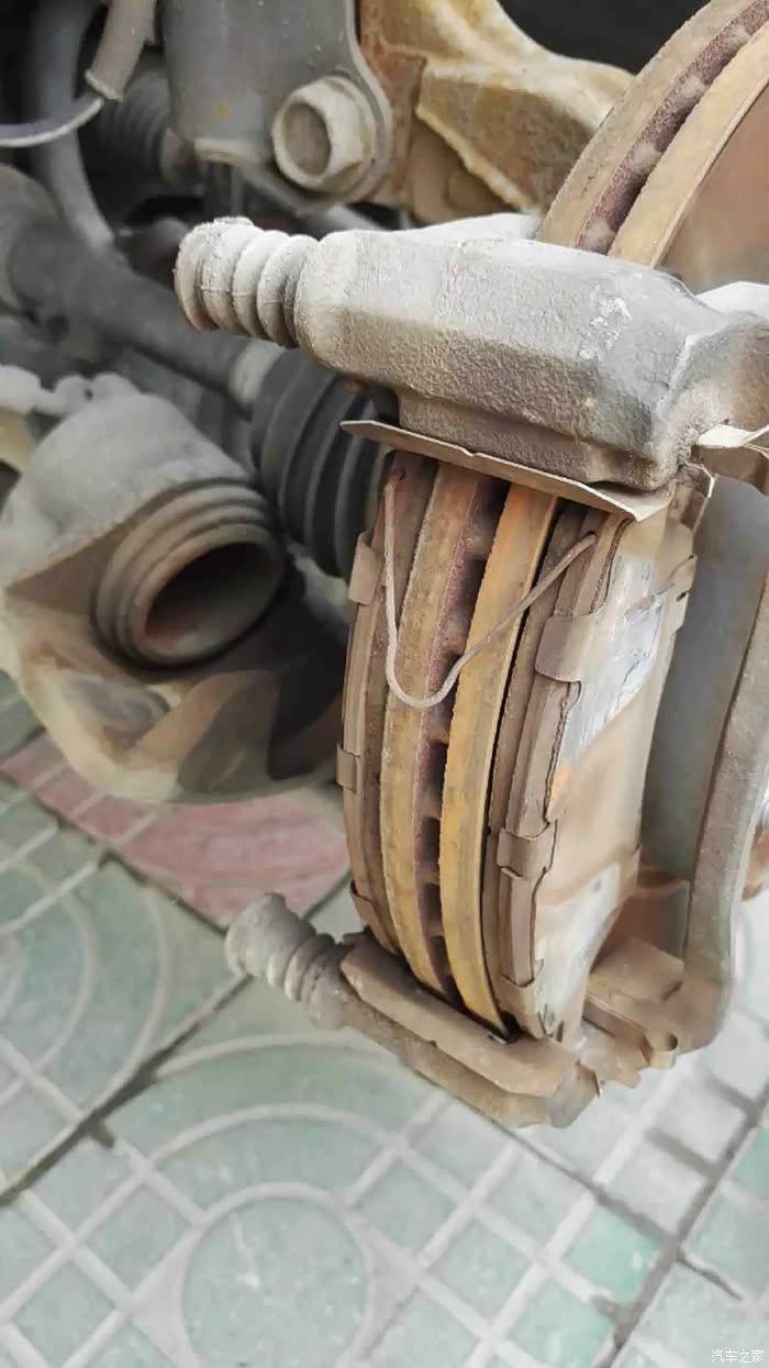 2007年7月入手的日产骐达车,已跑了10万多公里了~~~前段时间发现刹车偏软,最近刹车时还有尖叫的声音,仔细查看了一下,刹车片大约3-5mm了,应该是到了要更换的极限了~~下次面长时间使用的话,会出现疲惫的状态,就是刹车距离过长,这样我们在行驶的时候也会增加我们的安全隐患。刚开始自己也是没有在意这个事情。但是使用越久就要刹车越偏软。自己就在网上买了一个刹车片。把它给更换一下。毕竟车的年龄很长啦,所以,各方面都会老化。其他方面老化没事儿,但是关于安全性的还是要重视起来。准备更换刹车片前,上论坛搜索了一下车友们换刹车片的作业,好好的研读了一下,在此感谢车友们的经验分享~~~