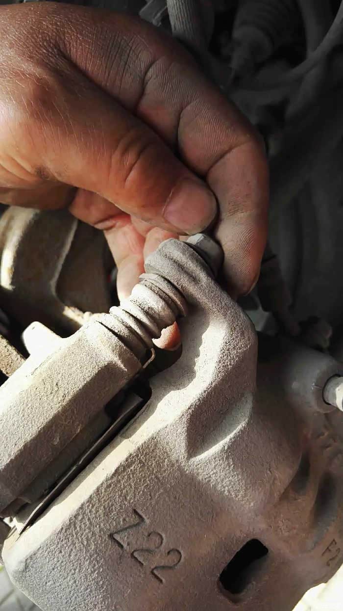 拆卸卡钳分压泵,只要拧下二只螺栓,就能取下分压泵,刹车片就能更换了~~~扳手拧松,用手取下螺栓~~~
