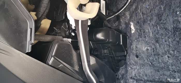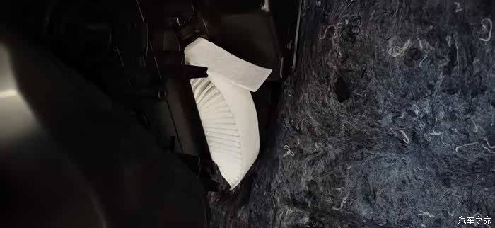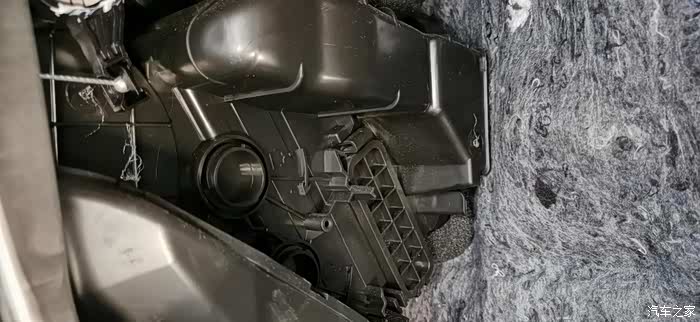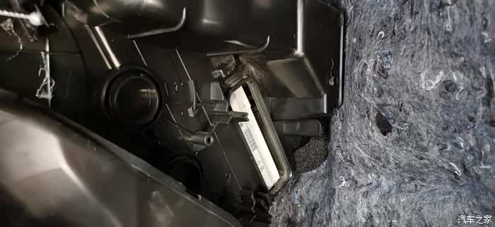 拆卸手套箱后的左边,我们可以看到整个空调的过滤结构