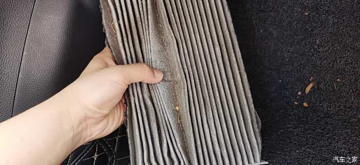 更换出来的滤芯,打开看看,似乎找到异味的原因了,每天在车子里面呼吸,为了更好地保护自己和家人,还是要勤劳点更换