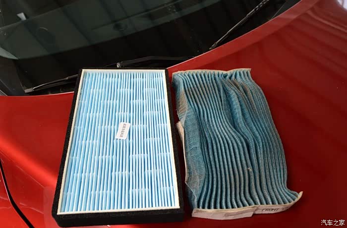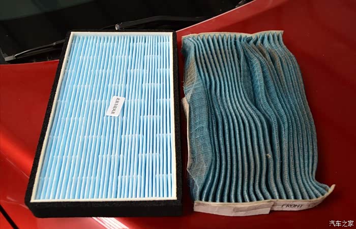 拆下的空调滤芯与新滤芯对比,不比不知道