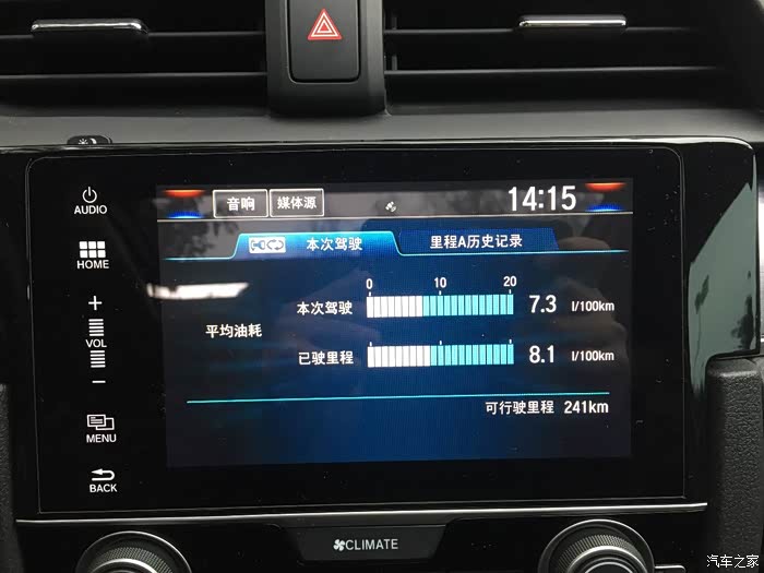 这是本次行使的DA屏记录,5.5(工息部百公里油耗)/7.3(今天测试的14公里油耗)=0.75,所以电脑数据和实际行使的数据还是吻合的。