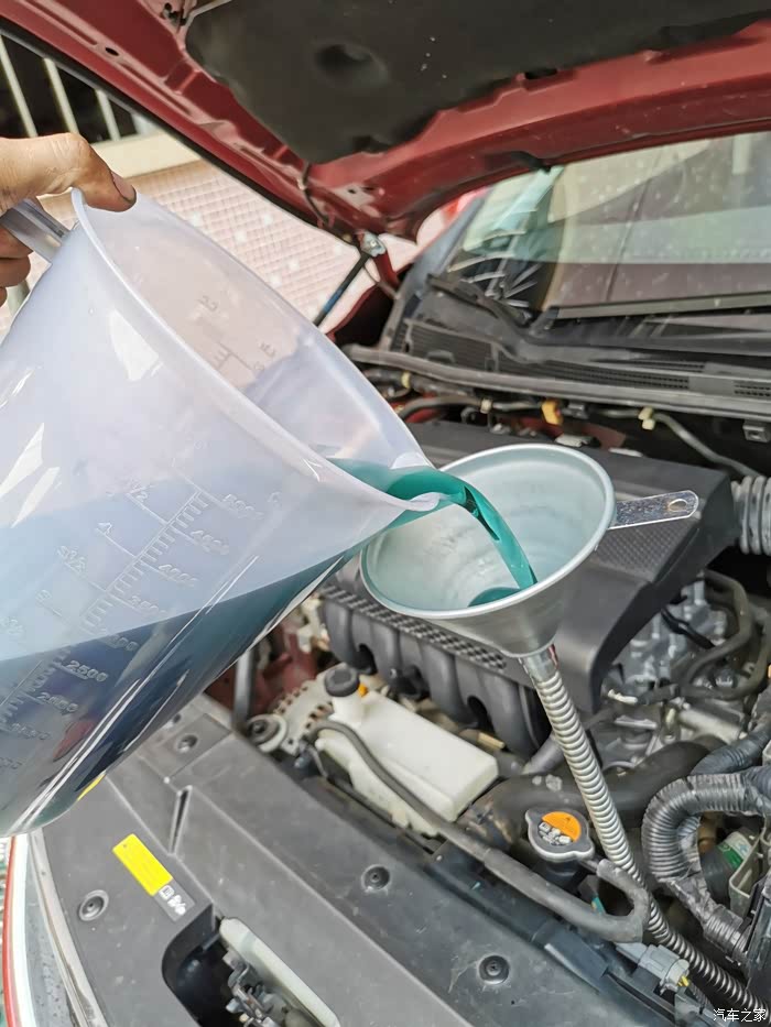 第二次加油,热车后溢流口溢出即可,大概与放出来的差不多