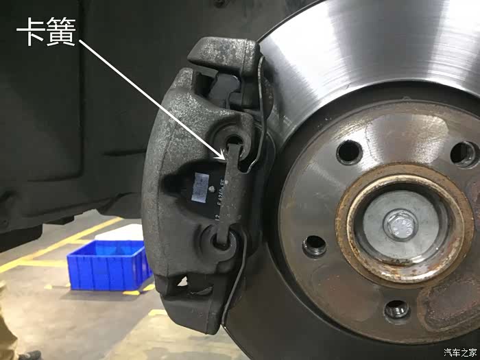 在卡钳的外缘有一个卡簧是专门用来固定刹车分泵的,一定要安装到位。在很多的德国车型上都是采用这种方法进行固定刹车卡钳的,特别是大众奥迪车型巨多。