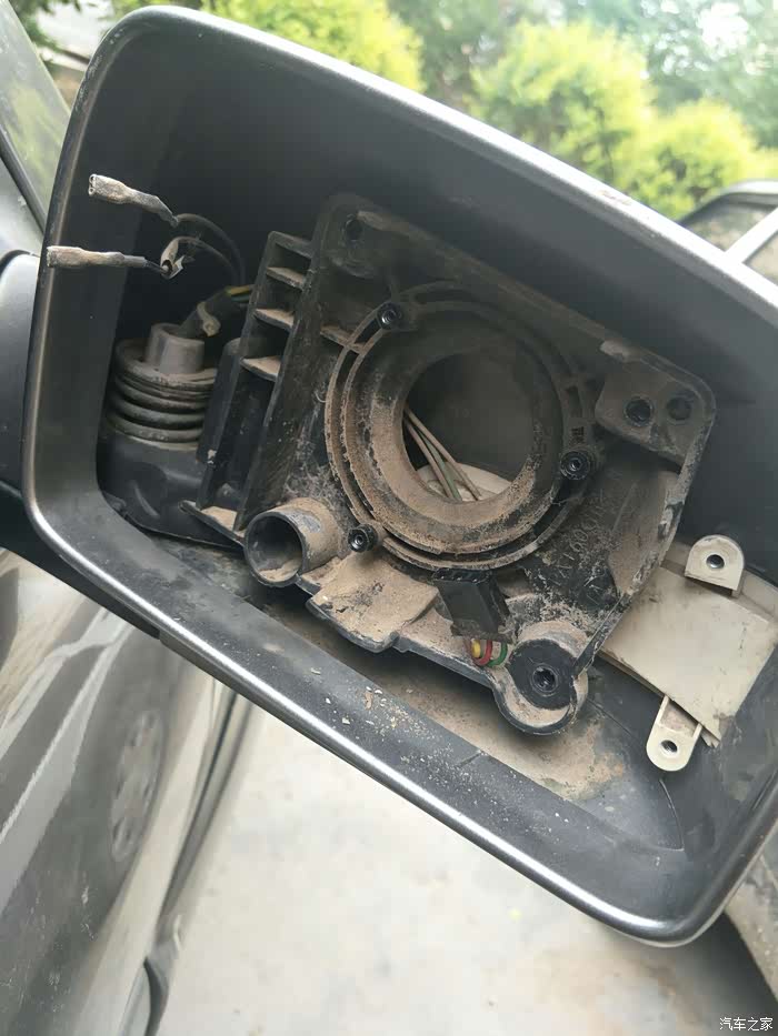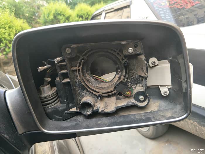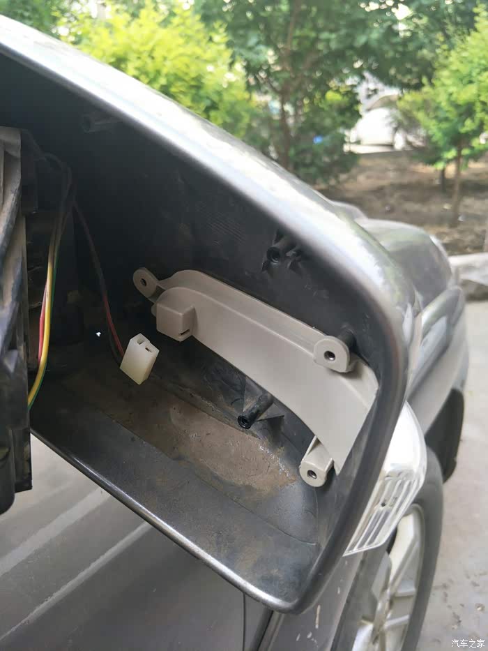 发现后视镜下面有个卡扣用小螺丝刀拆掉是三个螺丝