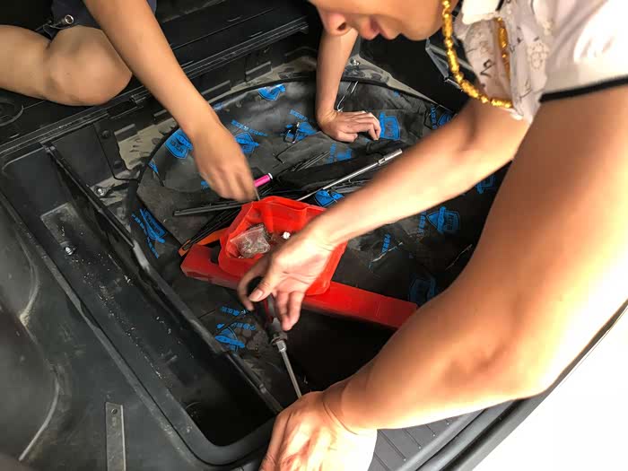 后备箱内满满的灰尘,拆了慢慢擦吧