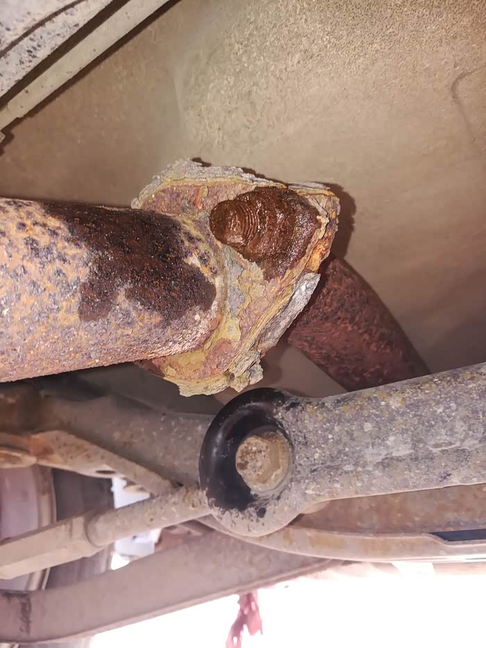 这张能清楚一些,排气管,跟消音包的接口处,全部断开了