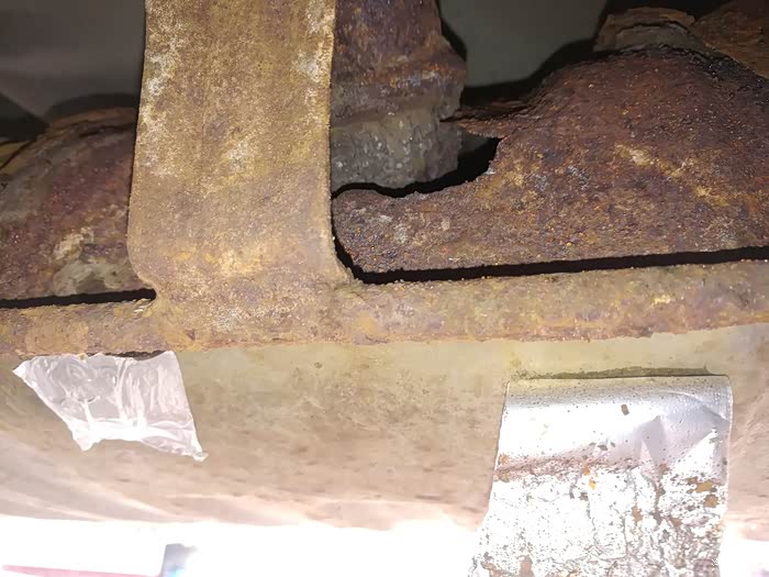 这是在车下面拍的消音包,开始以为就是这里烂了,没想到拆下来还有更大的惊喜