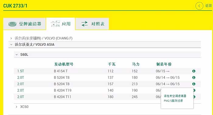 CUK2733/1,之前没关注到,后来发现某东有,曼牌官网显示为“活性炭空调滤清器(双层)PM2.5高效过滤”,这下彻底不知道CUK2733有没有过滤PM2.5的功能。