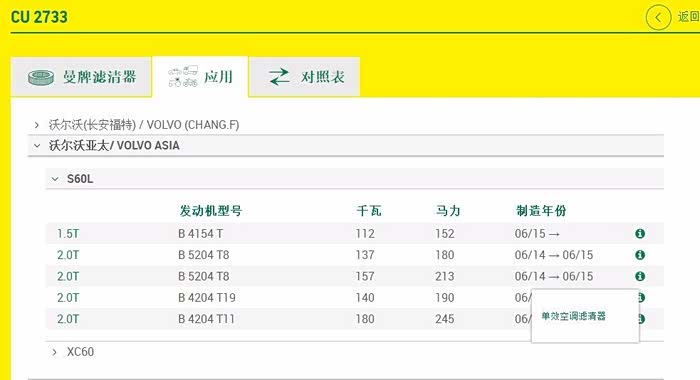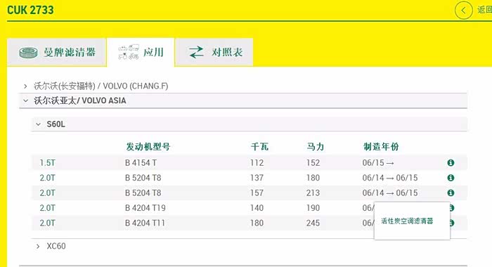 CU2733,曼牌官网显示未单效空调滤清器,就是没有活性炭。