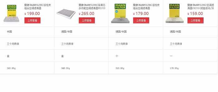 老婆对车子里的气味比较敏感,所以买车的时候选择了沃尔沃,也正因为如此,空调滤芯半年一换成了常事。这下要了我小命啊,4s每次收650块,2万的时候还清洗了空调管路,加800。论坛上大神多,把滤芯加入购物车,找攻略,最终决定下手。最终买了曼牌,先说下曼牌4款滤芯的区别。上图(图片来自曼牌官网)