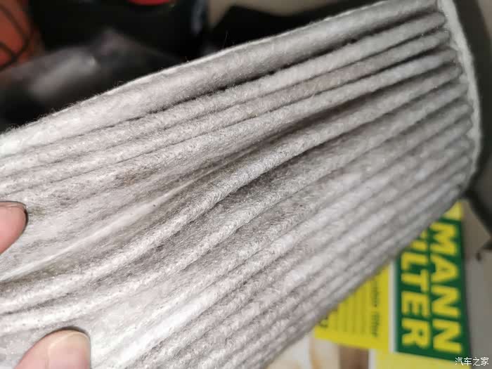上次更换的滤芯使用了8个多月(上车就开空调或通风),滤芯终于有味道了,又坚持了半个月,忍不住翻出我的曼牌至尊版倍清芯滤芯FP2733,仔细对比了一下,这个滤芯比CUK2733/1材料上要硬一些,重量稍轻。复习下攻略,10分钟搞定,顺便用吸尘器接软管清洗了滤芯盒,稍有一些灰。用了9个月的滤芯不是非常脏,主要是有异味了,不能忍。
