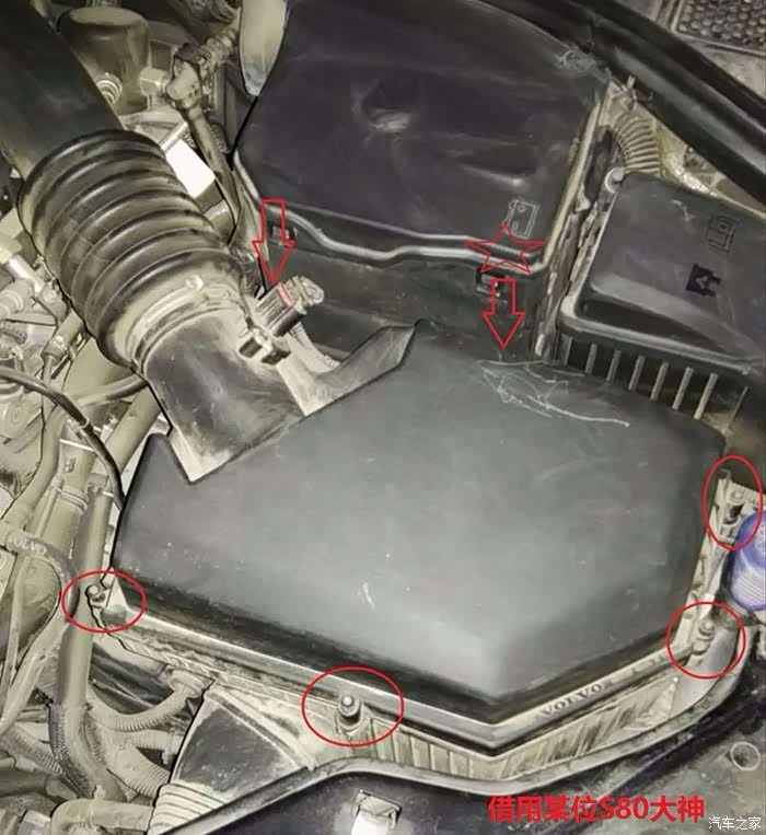 开始动手,网上买了T25的工具,拆卸空气滤芯盒子的,很简单,6个螺丝拆掉,盒子就可以打开,抬起来就行,旁边的东西不用管它,把原来的滤芯拔下来,用吸尘器吸一吸,原厂的滤芯密封很好,盖子内侧上部分没有灰尘。打扫完,装上新的,盖上盖子,拧上螺丝,OK。过程简单,就拍了一个图,为了表述清楚,找大神借用一张