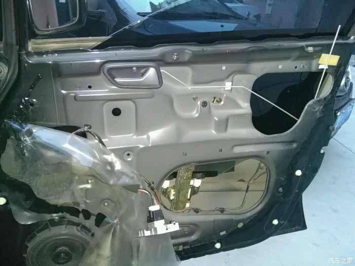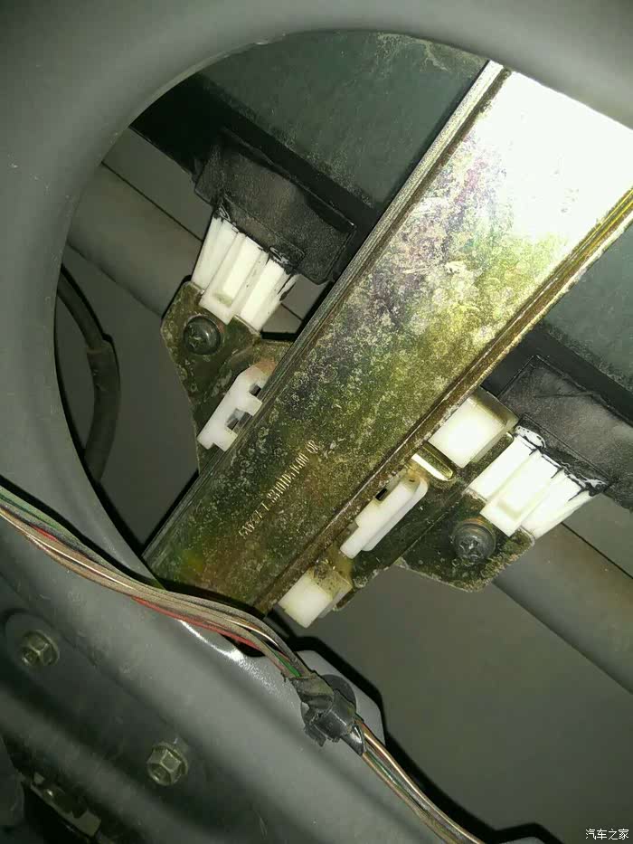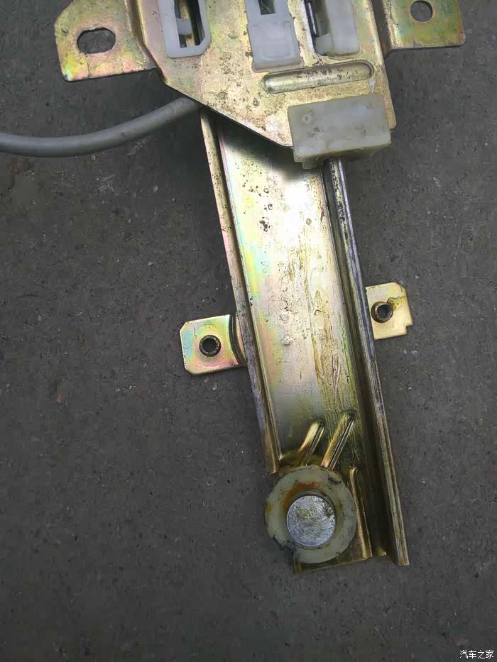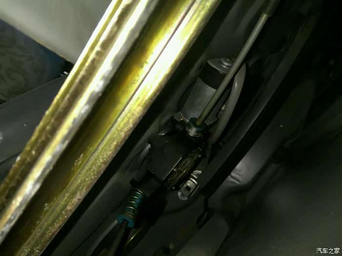 玻璃升降器是在本月23号坏的,当时把玻璃降到一半,再想往上升时,只听咔的一声,就升不到顶了,又试了一次,电机是有反应的,但玻璃就是动不了,没办法只能先找人帮着先把玻璃升上去,然后再做下一步打算。因为在网上看到过有车友说是钢丝绳年久未保养发生磨断而卡住的文章,心想难道这儿也是这个原因?