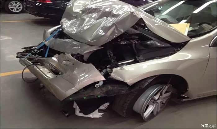 高速撞击下,车头面目全非,水箱、发动机全部损坏,引擎盖完全折起,A柱没有变形。