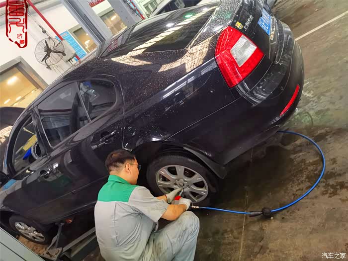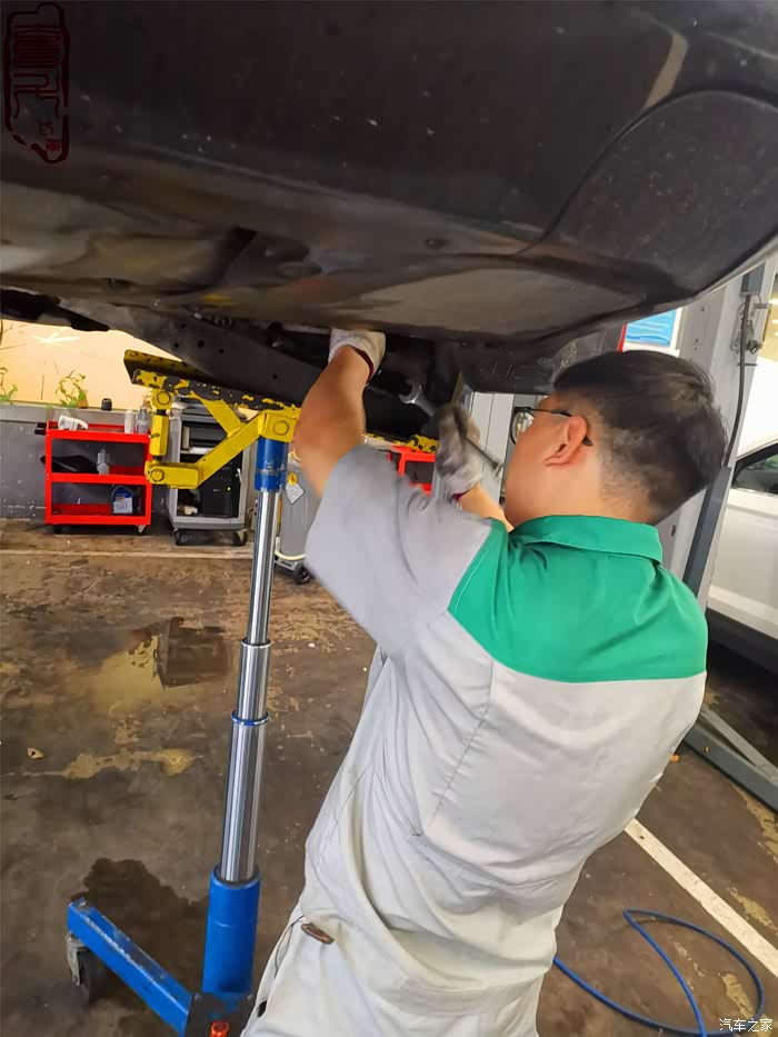 准备更换减震缓冲块,雨天,过来保养的车子还是很多的……