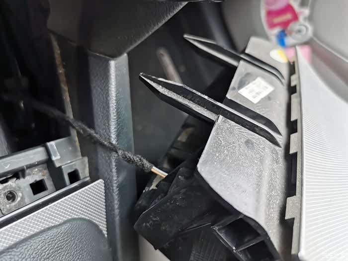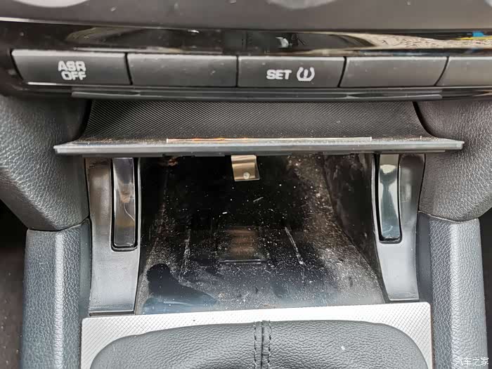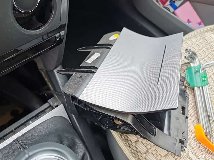 再次撬开档把的盖板。还需要把中控的面板也要拆了,因为最终烟灰缸总成拿出来的时候这几个地方可能会挡着。