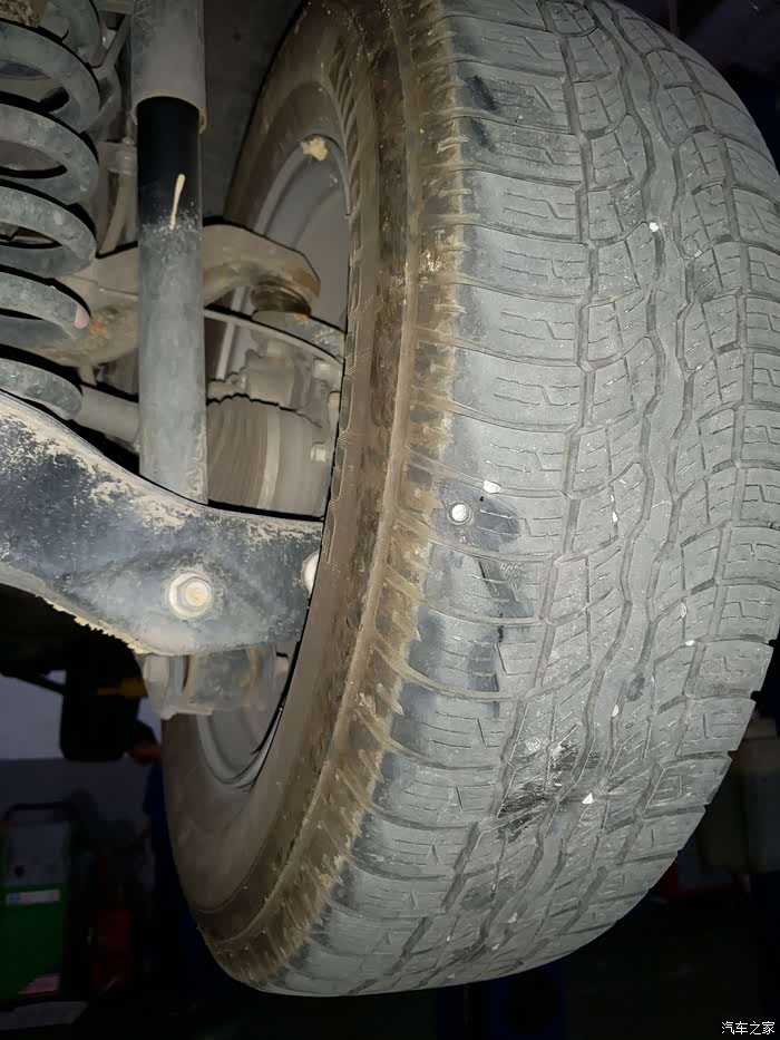 细心的小哥还在轮胎上发现了一只钉子,扎得很有水平,一点没漏气