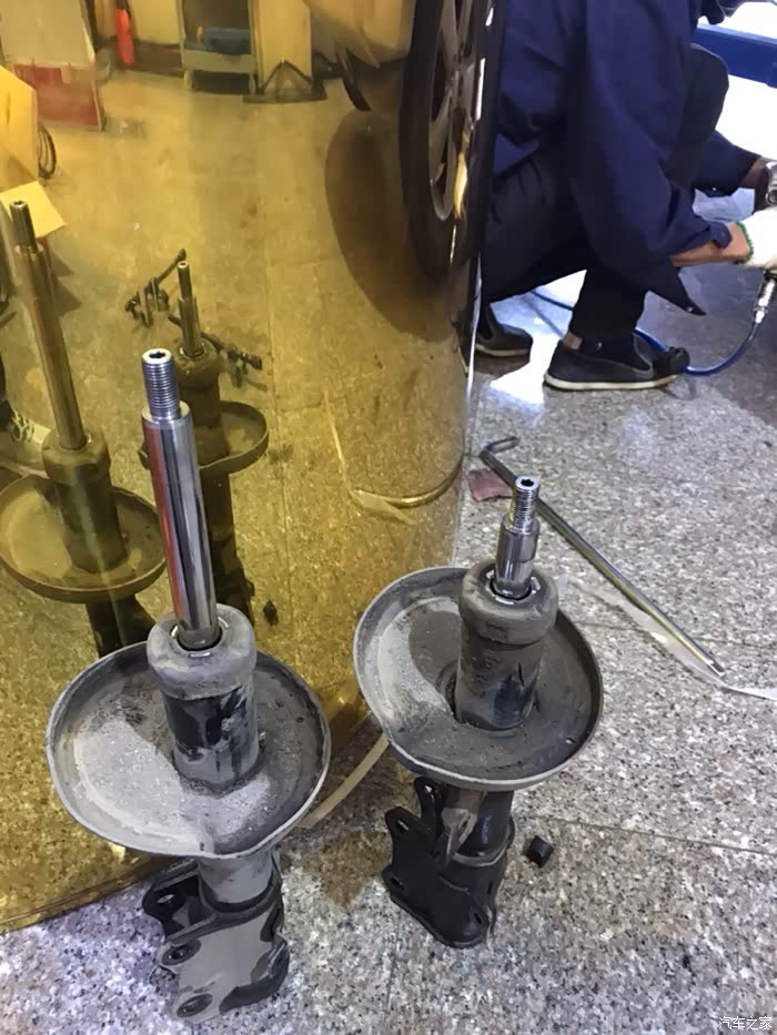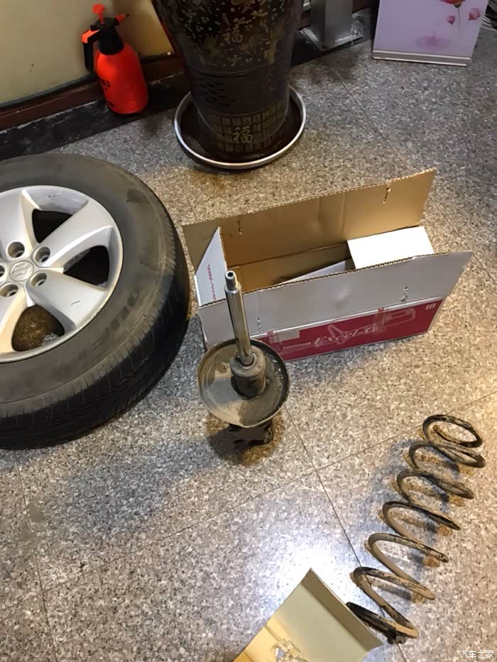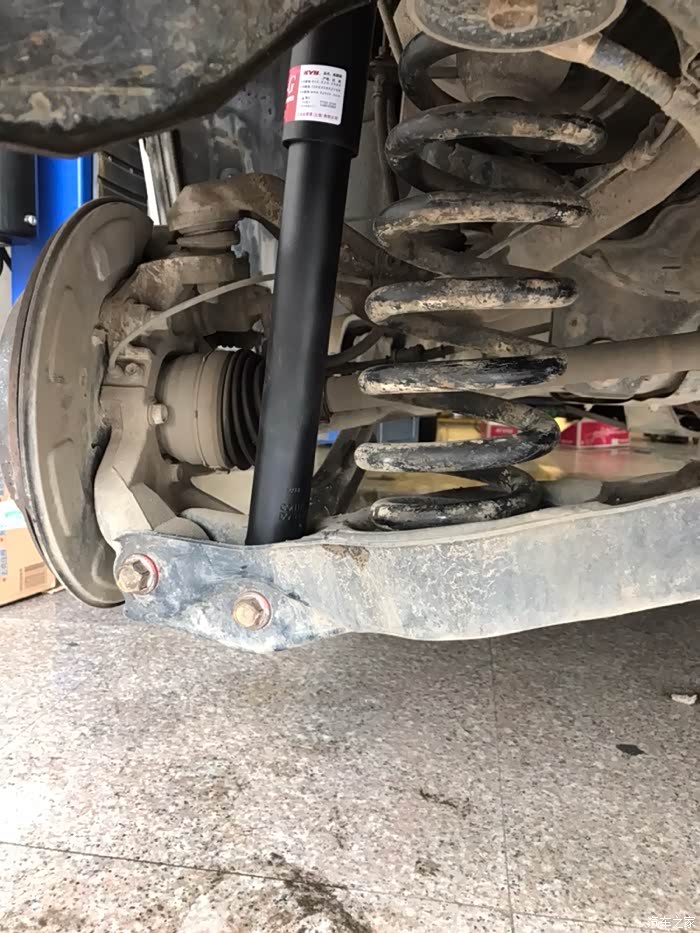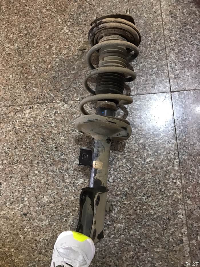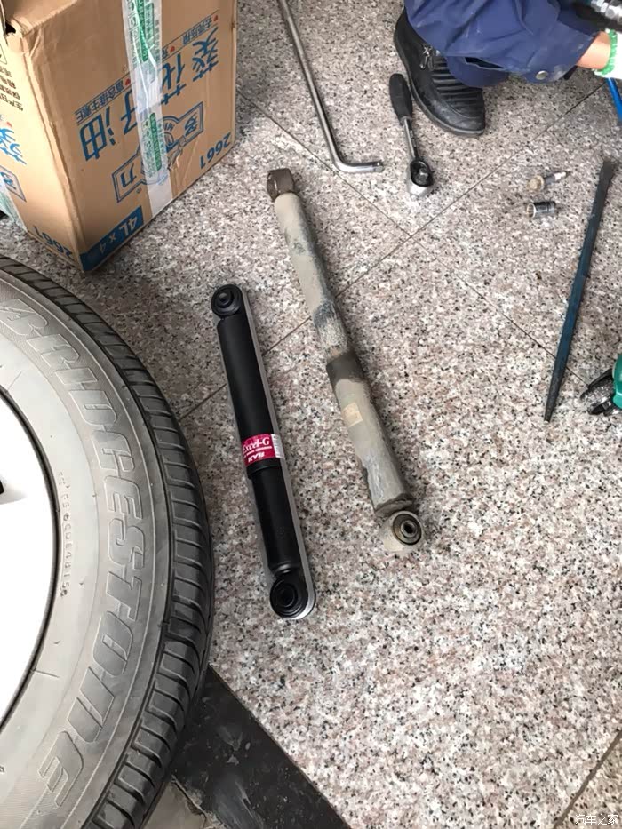 路上发现原减已经衰老了(有少许渗油)所以决定一起更换,买的是KYB日本产的产品,经拆检,证明我的判断是正确的!昆明下着小雨,车没洗,哈哈,将就看一下了,前后减拆下后都检查了一下,都不行了,簧是没有任何问题的。所以到一定公里数,一定要换,这是我这次换减实践下来的结果。不要等不行了再换,那是不可取的。