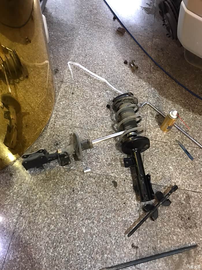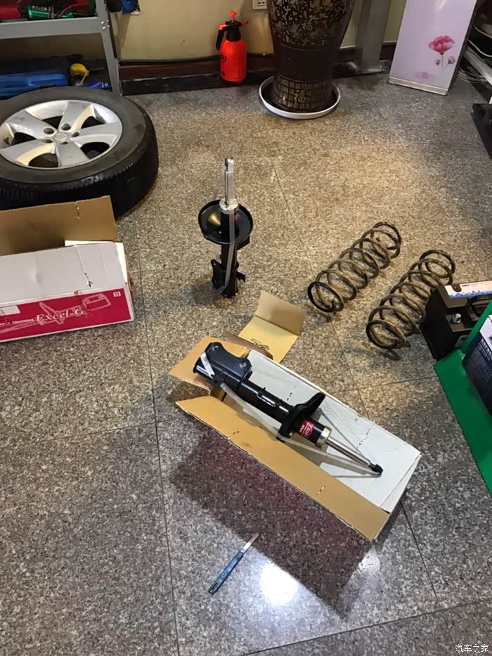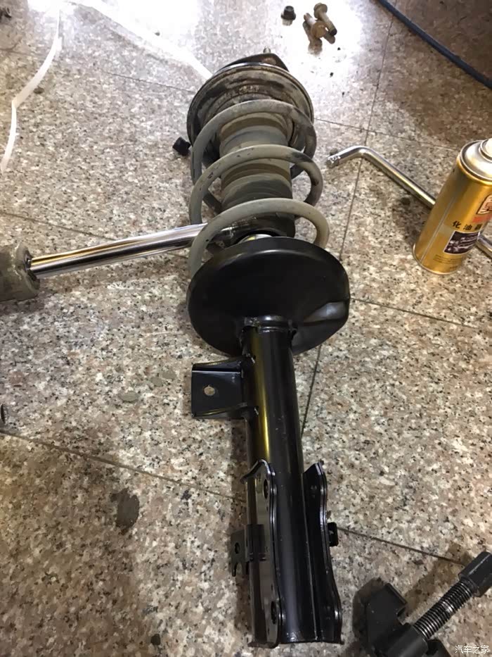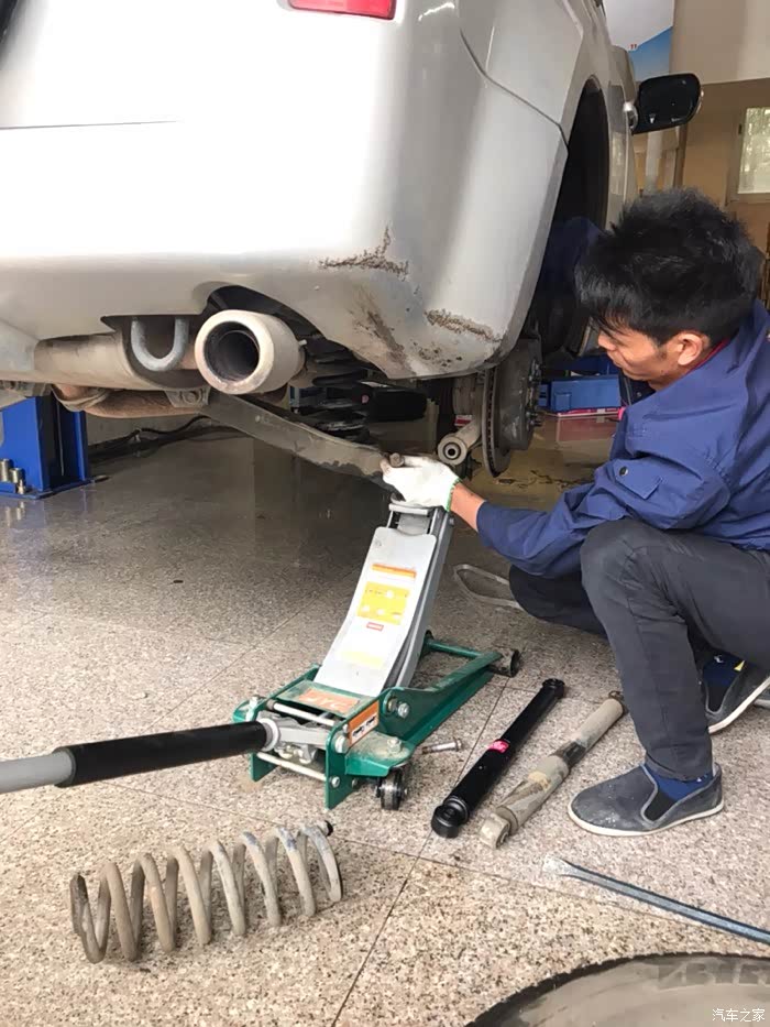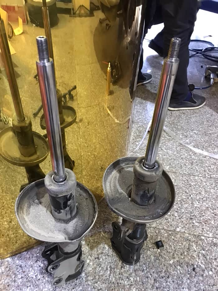 路上发现原减已经衰老了(有少许渗油)所以决定一起更换,买的是KYB日本产的产品,经拆检,证明我的判断是正确的!昆明下着小雨,车没洗,哈哈,将就看一下了,前后减拆下后都检查了一下,都不行了,簧是没有任何问题的。所以到一定公里数,一定要换,这是我这次换减实践下来的结果。不要等不行了再换,那是不可取的。