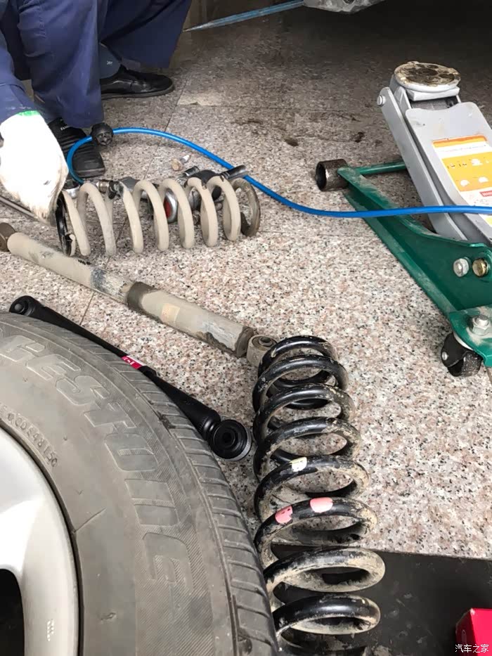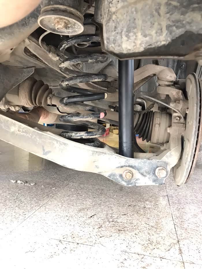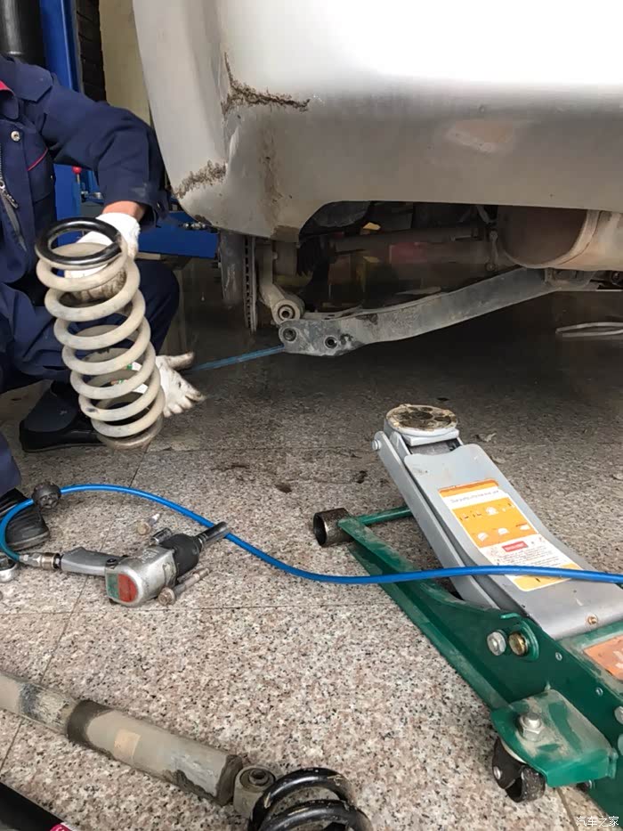 和车友拿的(400公里不到换奥簧拆下的原减后簧)准新后减簧换了试试,做个比较。