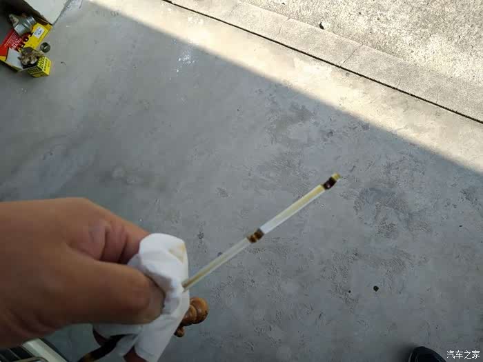 熄火20分钟后再次确认机油尺,正好在机油尺有刻痕的上端。保养完成,保养情况里程记录在小本子上。