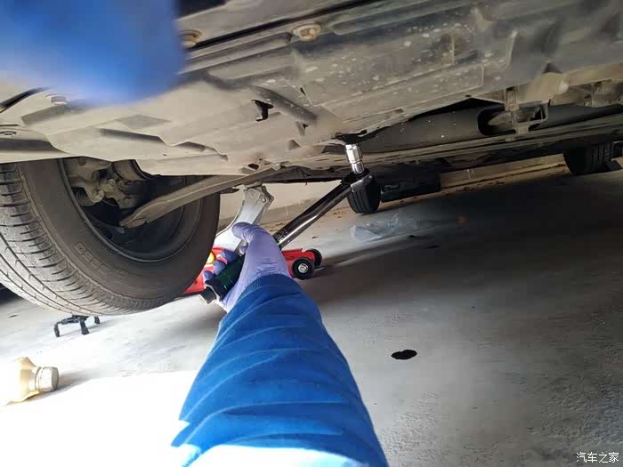 放油螺丝靠近副驾驶位置,偷个懒只顶升右前方。
