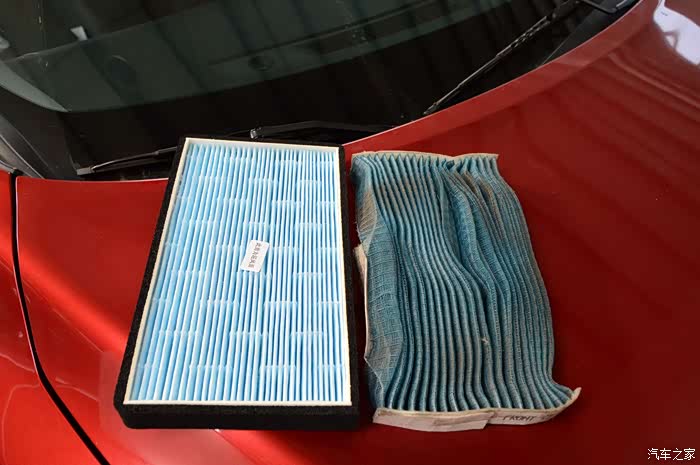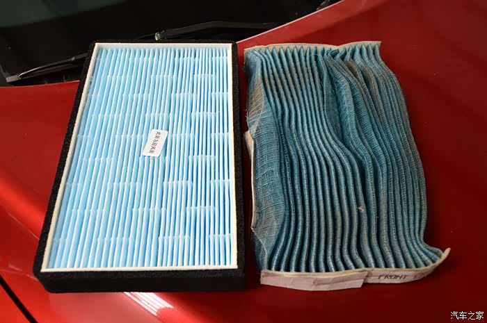 拆下的空调滤芯与新滤芯对比,不比不知道