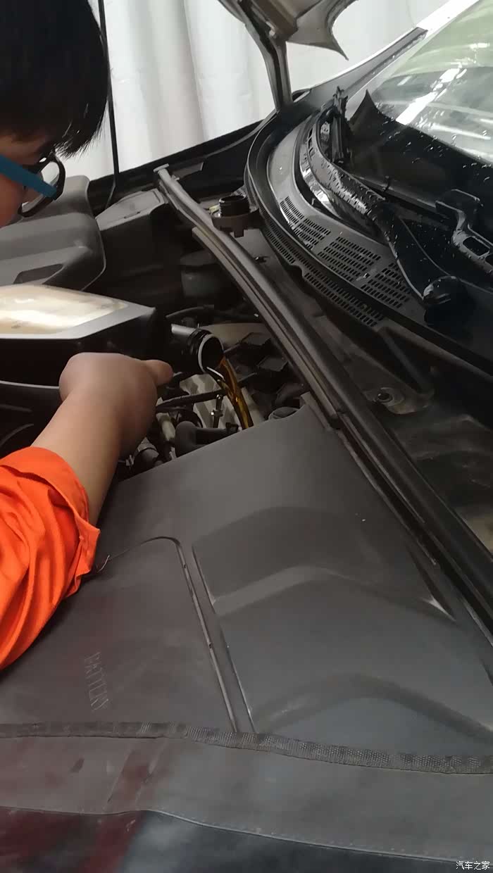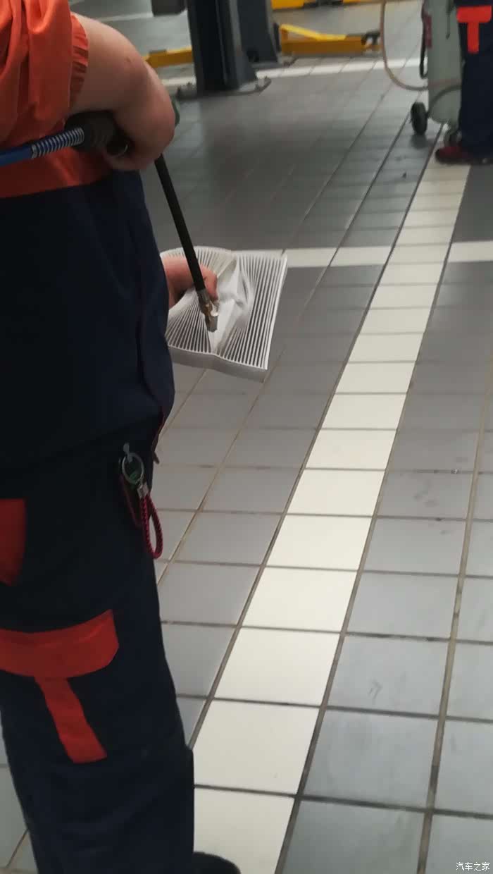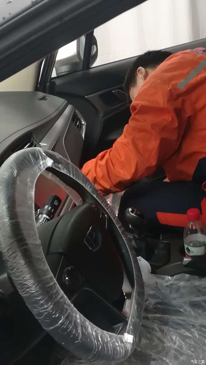 师傅开始换空调滤芯了,座椅给细心的保护起来了,真不错