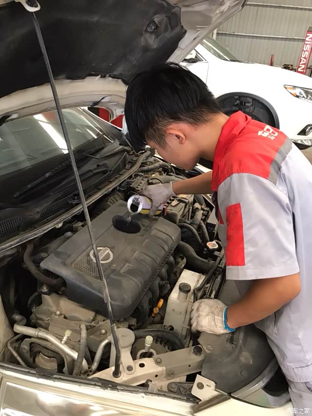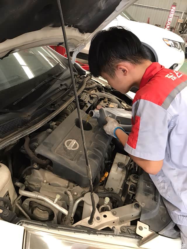 今天来到4S店给我的小白骐达做保养。我看很多盆友喜欢记录爱车保养,可是我第一次写。就是这样,爱不一定要说出来。默默陪伴我7年的小骐达,我很爱它。哈哈哈。为了给4S店的盆友多赚一点,她说啥项目我就做啥好了。